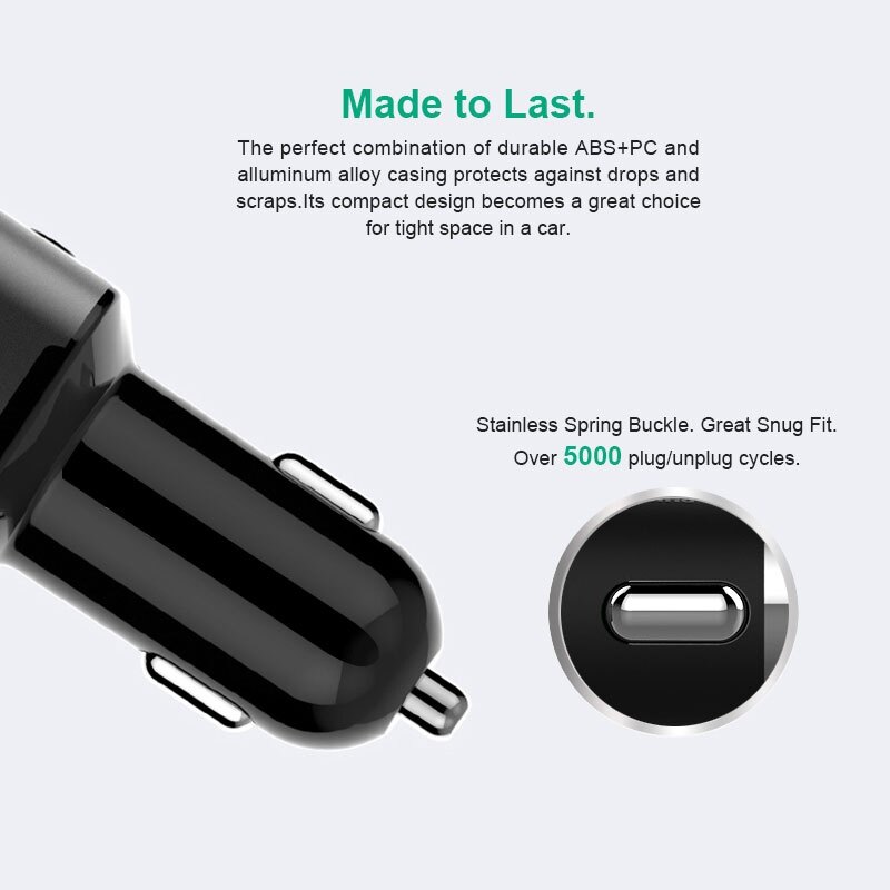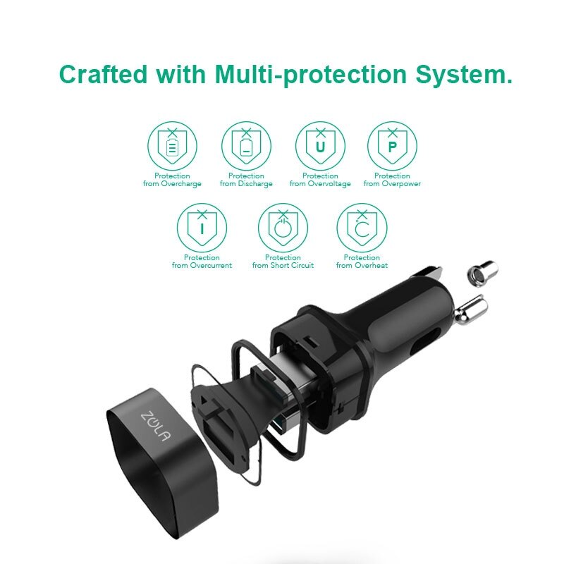 Product details of ZOLA Dash Q 30W Quick Charging 3.0 Car Charger - Black/Black and Grey (Zola Malaysia Warranty)