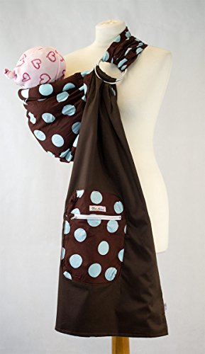 -. Title : Palm and Pond Adjustable Ring Sling Baby Carrier - Brown With Baby Blue Spots