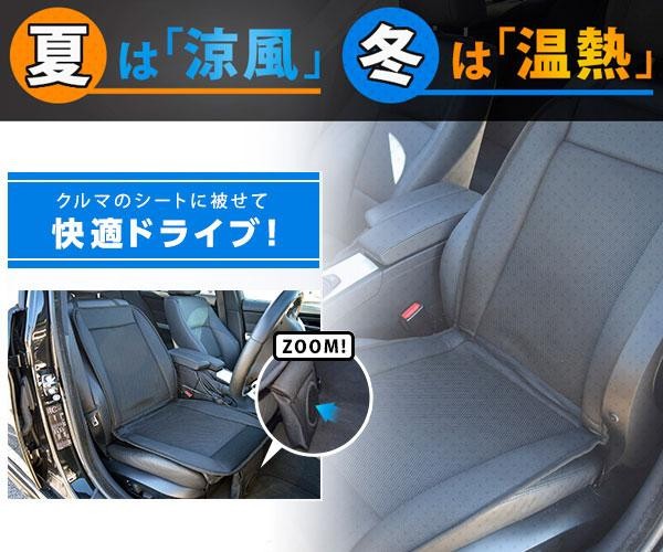 | 春から夏は本体に内蔵されているファンから空気を吸い込み、お尻から背中まで風が通るのでシートがムレません。秋から冬はシートに張り巡らせている熱線により、じんわりとお尻から背中まで温めてくれます。 |