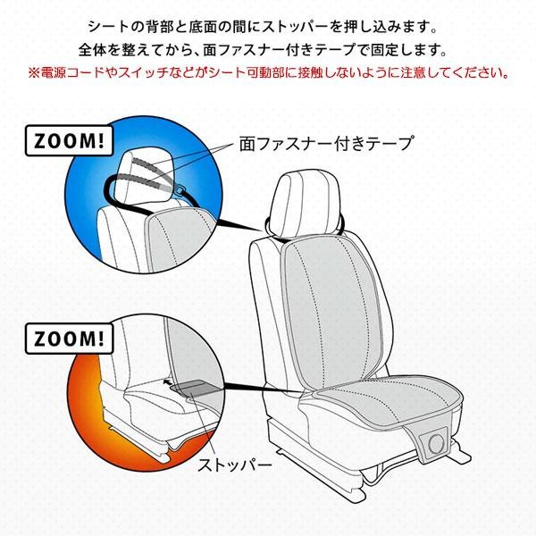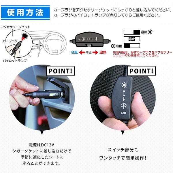 春から夏は本体に内蔵されているファンから空気を吸い込み、お尻から背中まで風が通るのでシートがムレません。秋から冬はシートに張り巡らせている熱線により、じんわりとお尻から背中まで温めてくれます。 |