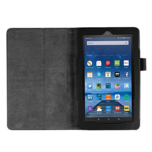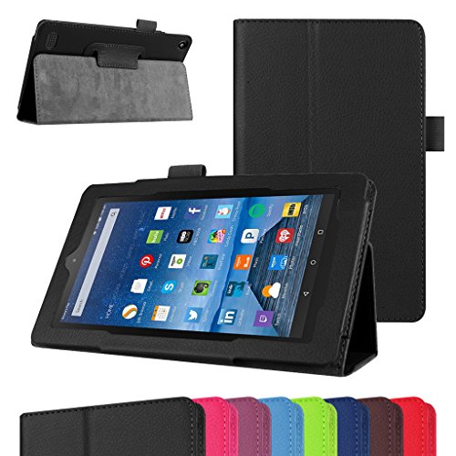 Fire 7 5th Generation Case,Mama Mouth PU Leather Folio 2-folding Stand Cover with Stylus Holder for 7" Amazon Fire 7 Android Tablet 5th Generation 2015 release,Black