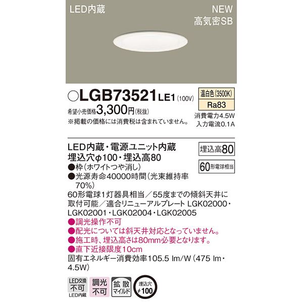 ●光源:LED(内蔵、温白色タイプ)、色温度:3500K、光源寿命40000時間(光束維持率70%)