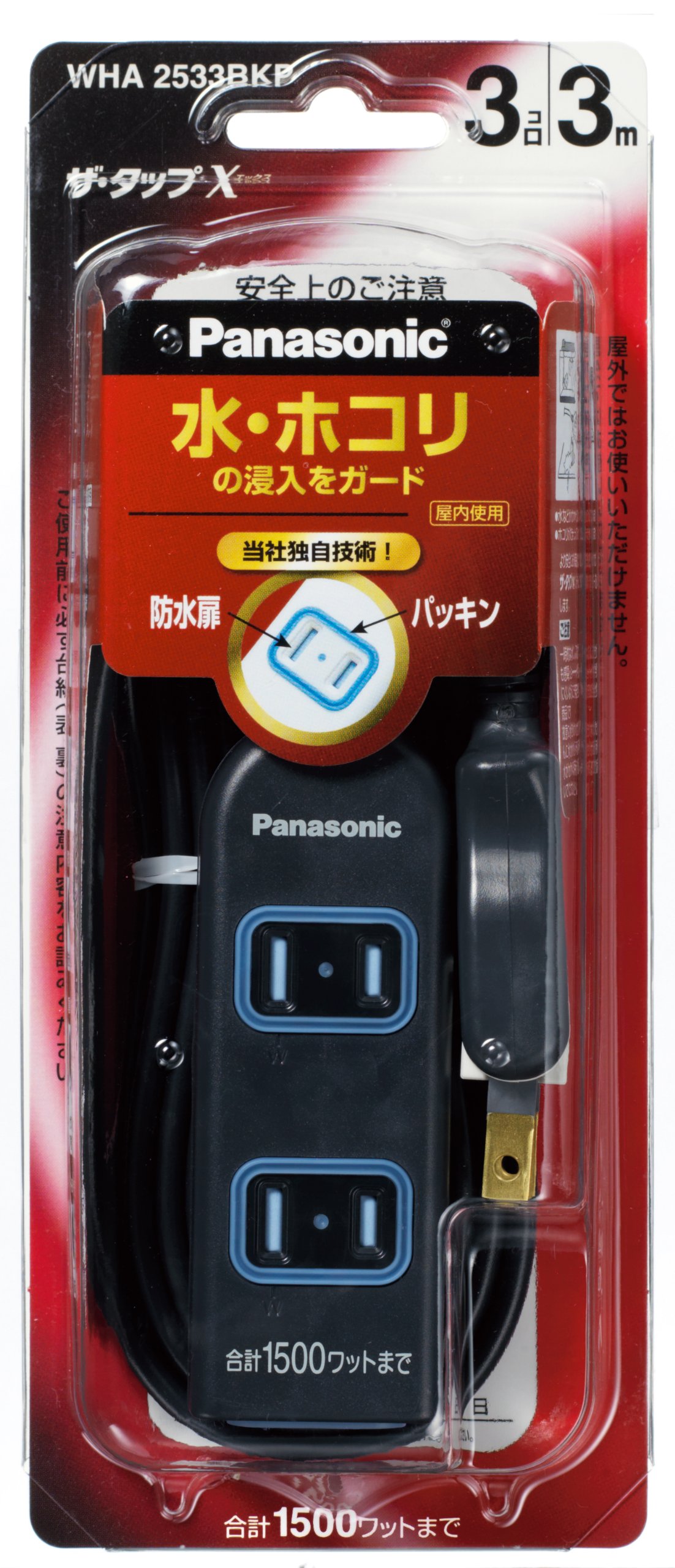 "Waterproof door" which guards the invasion of dust and dust temporarily in the world · With "batch waterproof switch" · "Urea resin" which is strong against tracking in the inner body Also a "heat resistant 2" which adopted "fire resistant resin"