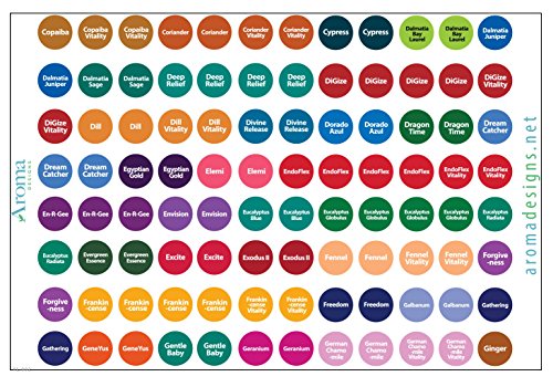 -. Binding : Health and Beauty -. Brand : Aroma Designs -. Feature : OIL & WATER RESISTANT - These glossy Young Living essential oil lid stickers have a special laminate to ensure that the oils or water won't smear the ink or loosen the adhesive. / EVERY YOUNG LIVING OIL INCLUDED - This set of 4 sheets totaling 384 Young Living cap stickers includes 191 different essential oils specialty essential oil blends, which is at least 2 stickers for every single Young Living oil available as of 2016. / ULTRA STRONG ADHESIVE - These stickers have a permanent adhesive that keep them tightly in place / COLOR CODED - This complete set of premium, pre-P.R.Inted labels is color-coded to match Young Living oils for all available oils and blends, allowing you to easily identify your Young Living essential oils from the bottle or vial lid. Perfect for keeping your oils organized and accessible! / DIMENSIONS - 1/2" in Diameter, allowing them to fit on almost every essential oil lid available. -. Label : Aroma Designs -. Manufacturer : Aroma Designs -. MPN : labels-youngliving -. PackageQuantity : 1 -. PartNumber : labels-youngliving -. ProductGroup : Health and Beauty -. ProductTypeName : HEALTH_PERSONAL_CARE -. Publisher : Aroma Designs -. Studio : Aroma Designs -. Title : Young Living Essential Oils Labels - Complete Set - Includes Multiple Young Living Bottle Cap Stickers for Most Young Living Oils - Perfect Lid Stickers to Keep Your Oils Organized