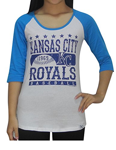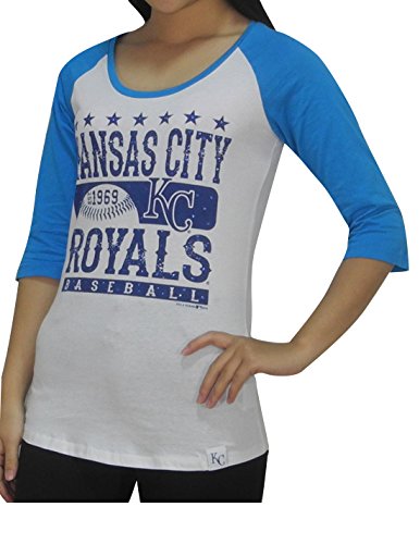 MLB KANSAS CITY ROYALS Womens Athletic 3/4 Sleeve Glitter T-Shirt L White
