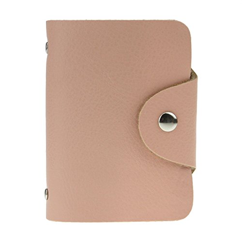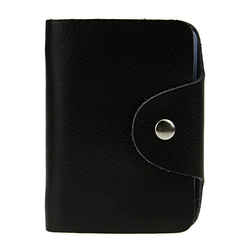 Capacity: 26 Business/Credit/ID Cards; Metal snap closure.