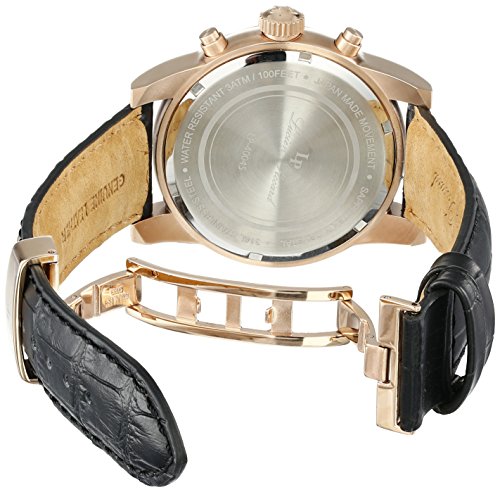-. Title : Lucien Piccard Men's 'Bosphorus' Quartz Stainless Steel and Leather Casual Watch, Color:Black (Model: LP-40045-RG-01)