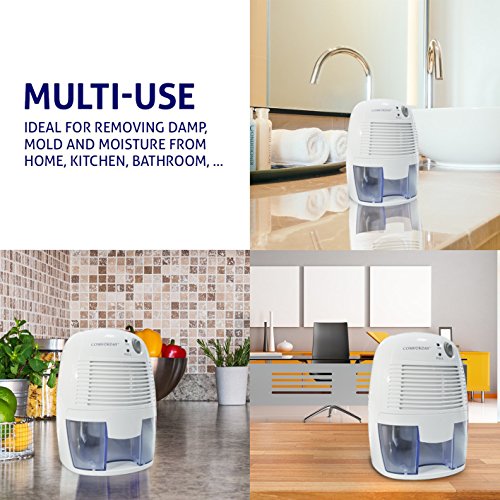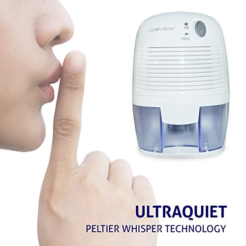 Our Premium Whisper quit Comforday Mini Dehumidifier features Peltier technology which makes it light and quiet. The ideal moisture absorber for small rooms with poor ventilation causing musty odor and fungus in wardrobes, closets, cabinet, bookcase, clothes organizer, electrical products case, safe, RV, inside piano, bedroom, kitchen, bathroom and more. The Comforday Mini Dehumidifier eliminates this problem by keeping the areas free of unwanted moisture.