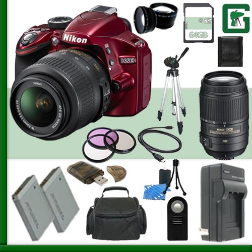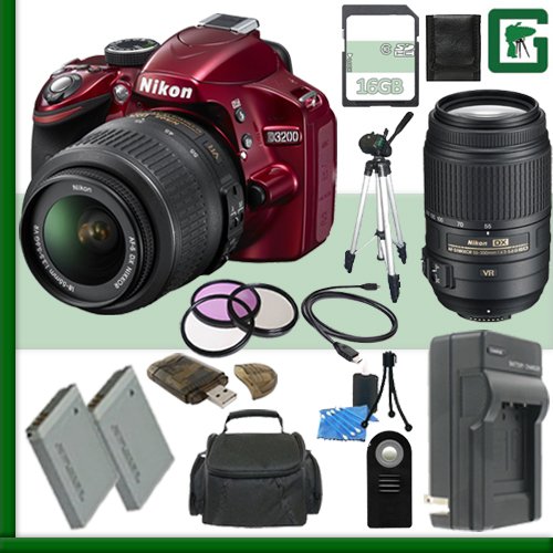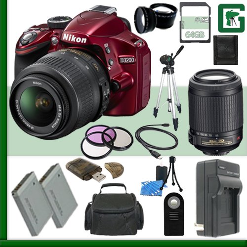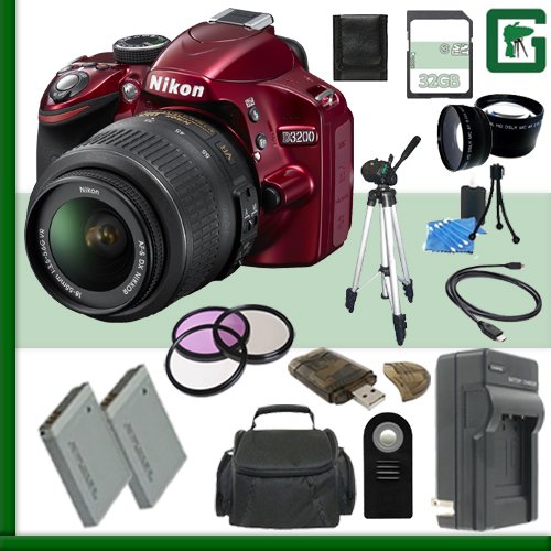 This Green's Camera World Package Includes:• Nikon D3200 Digital SLR Camera (Red)
