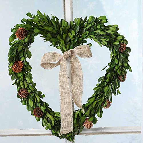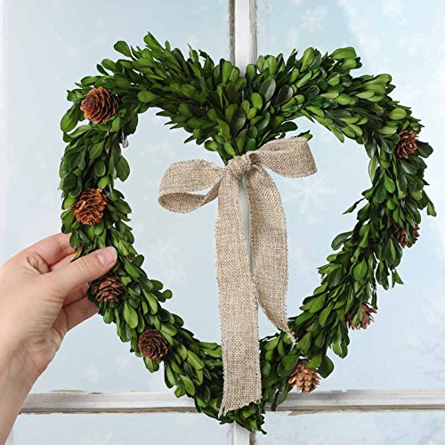 Factory Direct Craft Preserved Boxwood Leaf Heart Wreath With Mini Pinecones Throughout