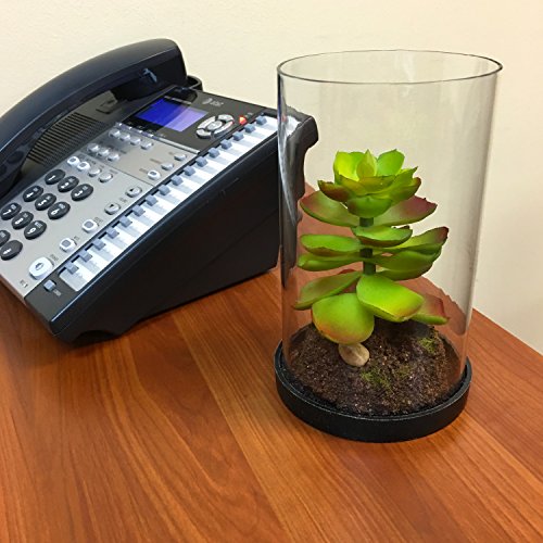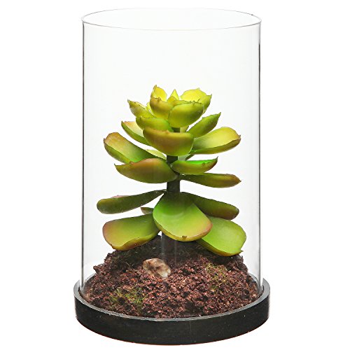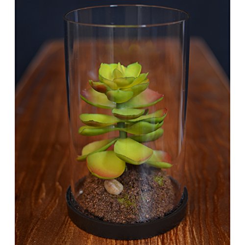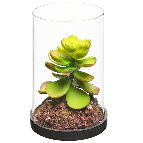 Decorative Green Artificial Succulent Plant w/ Open-top Glass Cloche Terrarium Vase