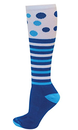-. Binding : Apparel -. Brand : Sports Katz -. Department : womens -. Feature : SM=child size or up to shoe size 6, ML= adult size or shoe size 7 or larger / Athletic Socks. / Moisture wicking, cushioned heel and toe. Dries twice as fast as cotton! / Great team socks! / Made in USA -. Model : 4173-BL -. ProductGroup : Apparel -. ProductTypeName : SOCKSHOSIERY -. Title : Sports Katz Stripes/Dots Socks
