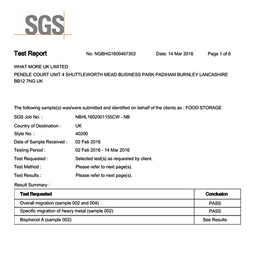 - Quality assurance: LFGB and US FDA certification, BPA fee