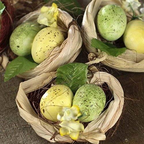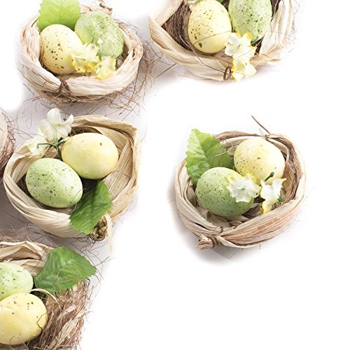 Package of 6 Green Artificial Egg Filled Bird Nests for Wedding Favors, Party Favors or Baby Showers