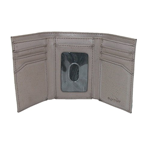 Buxton Mens Leather RFID ID Trifold Travel Wallet, Smoke