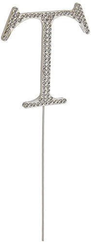 Unik Occasions Collection Crystal Rhinestone Wedding Cake Topper, Small, Letter T, Silver