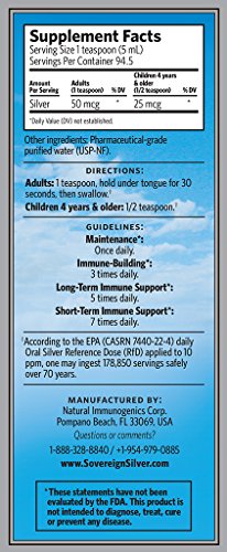 -. Binding : Health and Beauty -. Brand : Natural Immunogenics -. Feature : Sovereign Silver Bio-Active Silver HydrosolFor thousands of years, silver has played an essential role in safeguarding human health / Natural Immunogenics -. IsAdultProduct : 0 -. Label : Natural Immunogenics -. Manufacturer : Natural Immunogenics -. ProductGroup : Health and Beauty -. ProductTypeName : HEALTH_PERSONAL_CARE -. Publisher : Natural Immunogenics -. Studio : Natural Immunogenics -. Title : Sovereign Silver-Silver Hydrosol Natural Immunogenics 16 oz Liquid