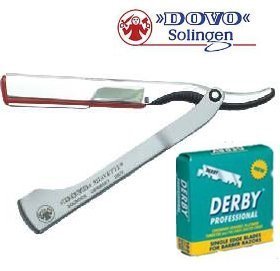 DOVO Shavette Steel Handle Straight Razor with Red Holder and FREE 100 DERBY Professional Single Edge Blades