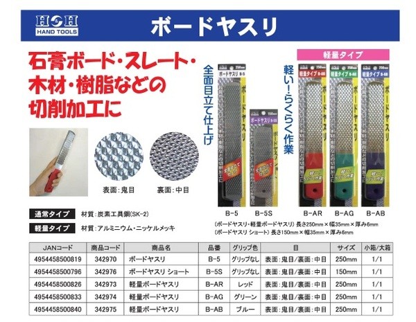 【商品名】(業務用2個セット) H&H 軽量ボードヤスリ 【表面:鬼目/裏面:中目】 グリップ色/ブルー(青) B-AB 〔DIY用品/大工道具〕