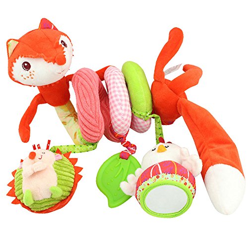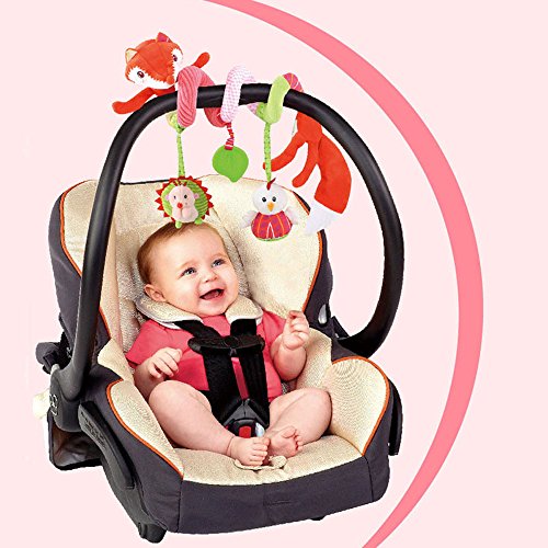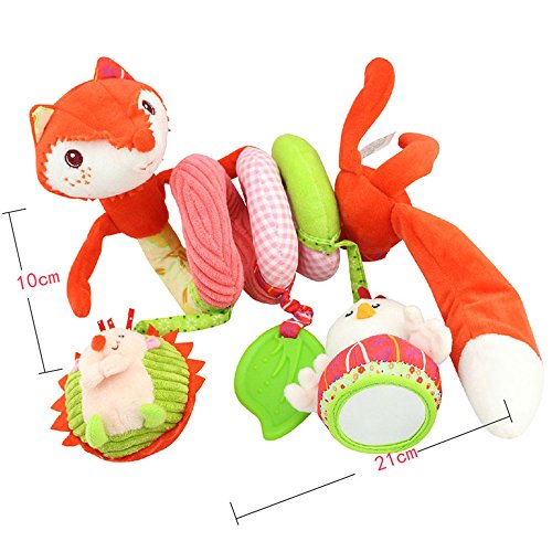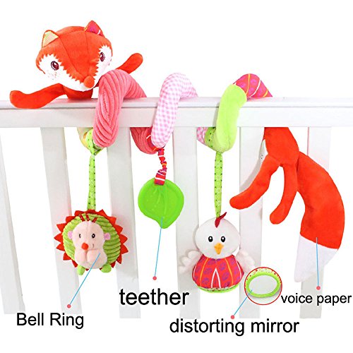 S shape wrap around bed , car seat handles, strollers ,shopping cart easily. Ideal plush rattle toy for education and decoration.