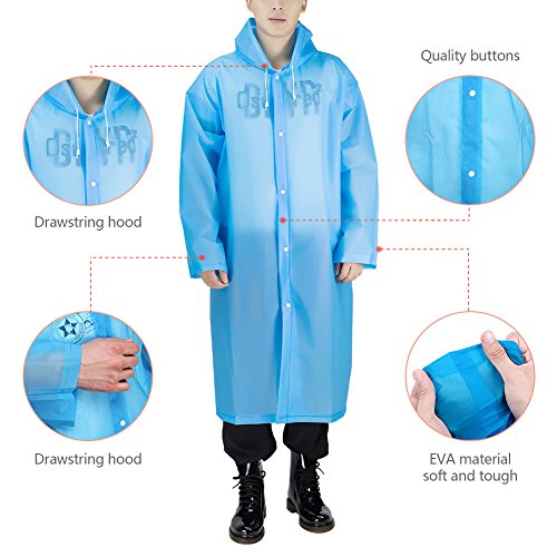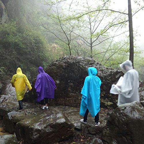 -. Feature : Waterproof: Welded seams poncho with drawstring hood and sleeves,keep you and your backpack dry. / Unisex Poncho: One size fits most, perfect for both men and women. 6colors available.Package:2pcs. / Material: Made of 0.15mm thicker EVA,an enviromentally friendly material,non-toxic,no smell and harmless. / Emergency Poncho: Lightweight and foldable in small size,just keep it in your backpack for emergency. / Multiple Use: Suitable for theme parks,disney land,rainy days,water rides,site seeing,dog walkers,camping and hiking,traveling,etc.