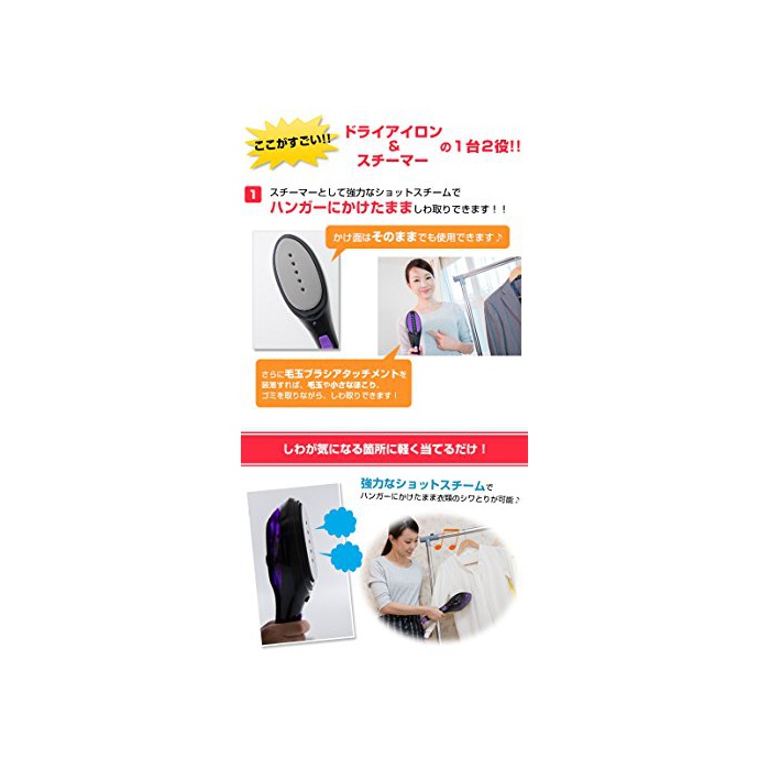 원본상품명: スマイル(SMILE) ハンディ スチ?ム アイロン ブラック/パ?プル SE4879