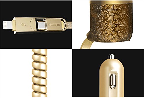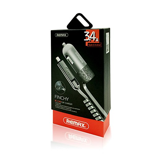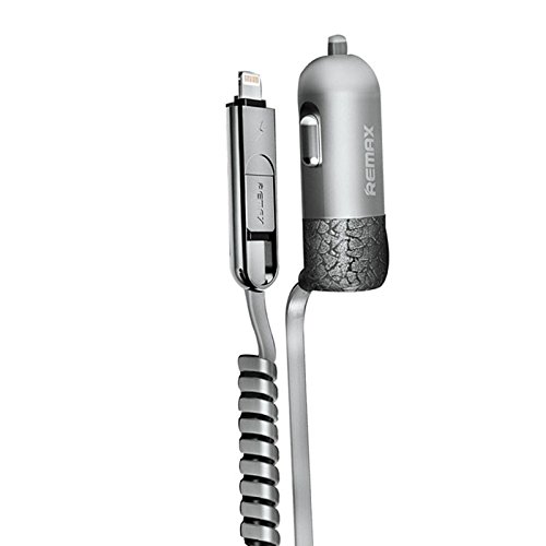 Remax Car Charger With Micro USB and Lightning Plug One Extra USB Port With LED Indicator 5V/3.4A 1.5m Gray