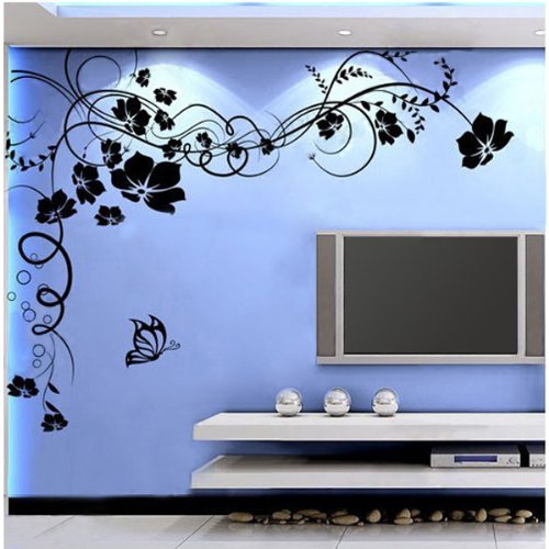 - Title : Fuloon Large Vine Flower Butterfly Wall stickers Wall decal--Black 200CM*150CM (Left)