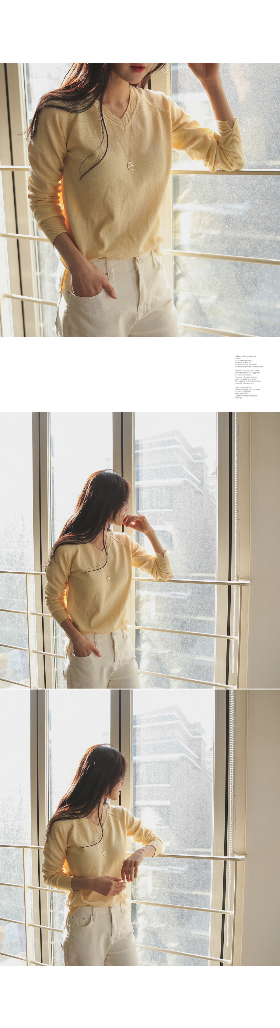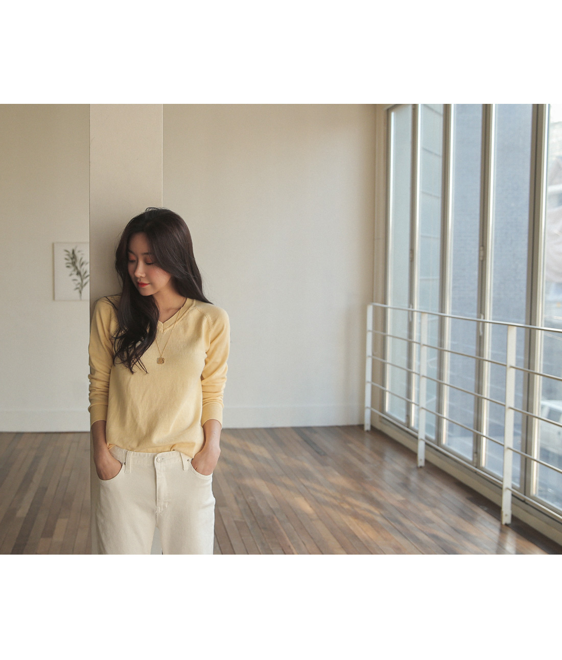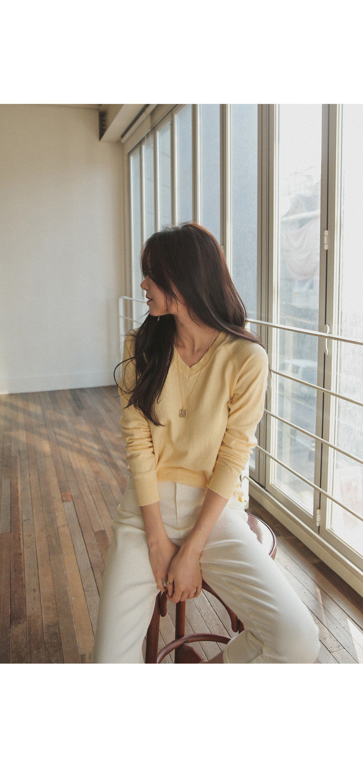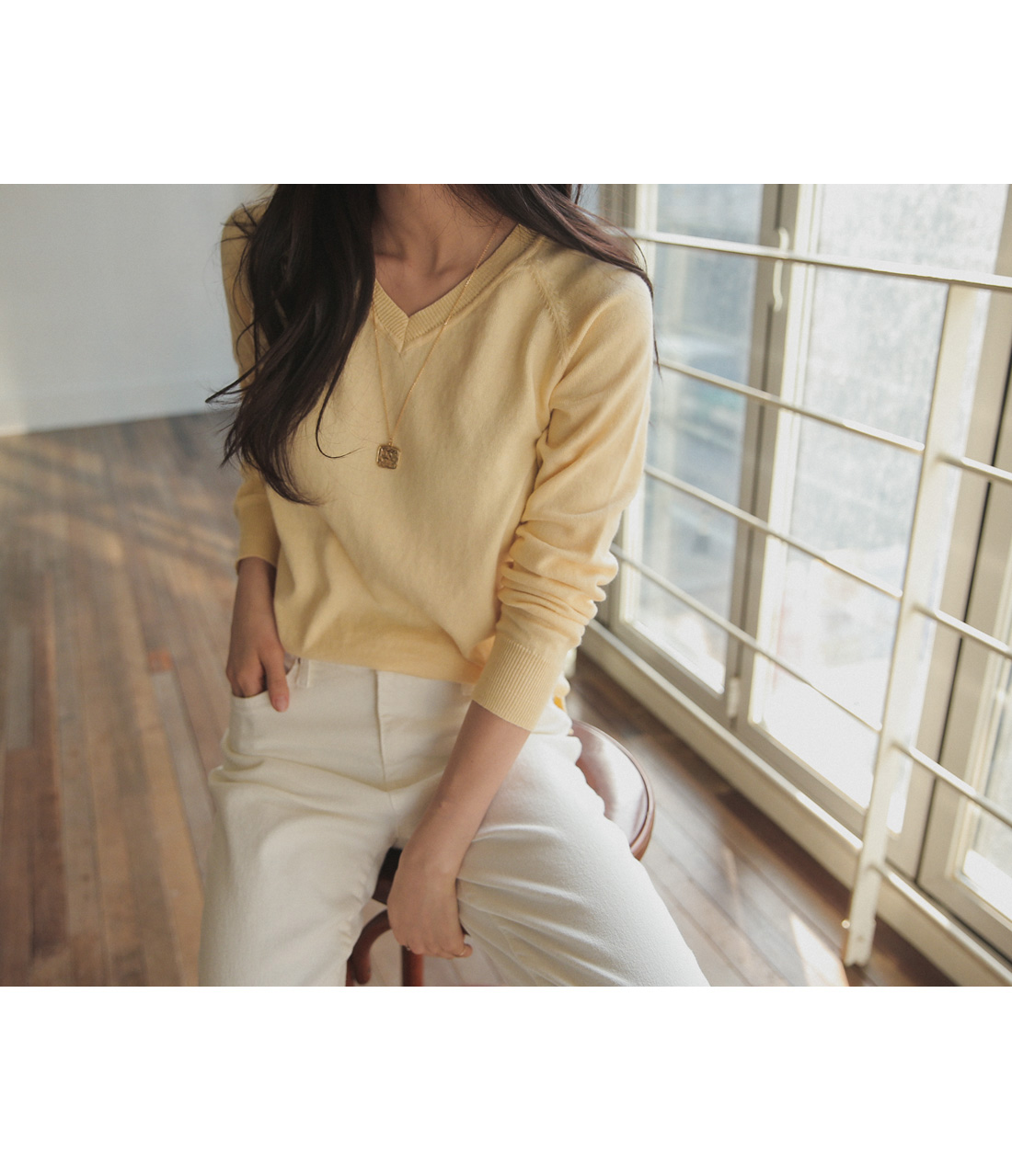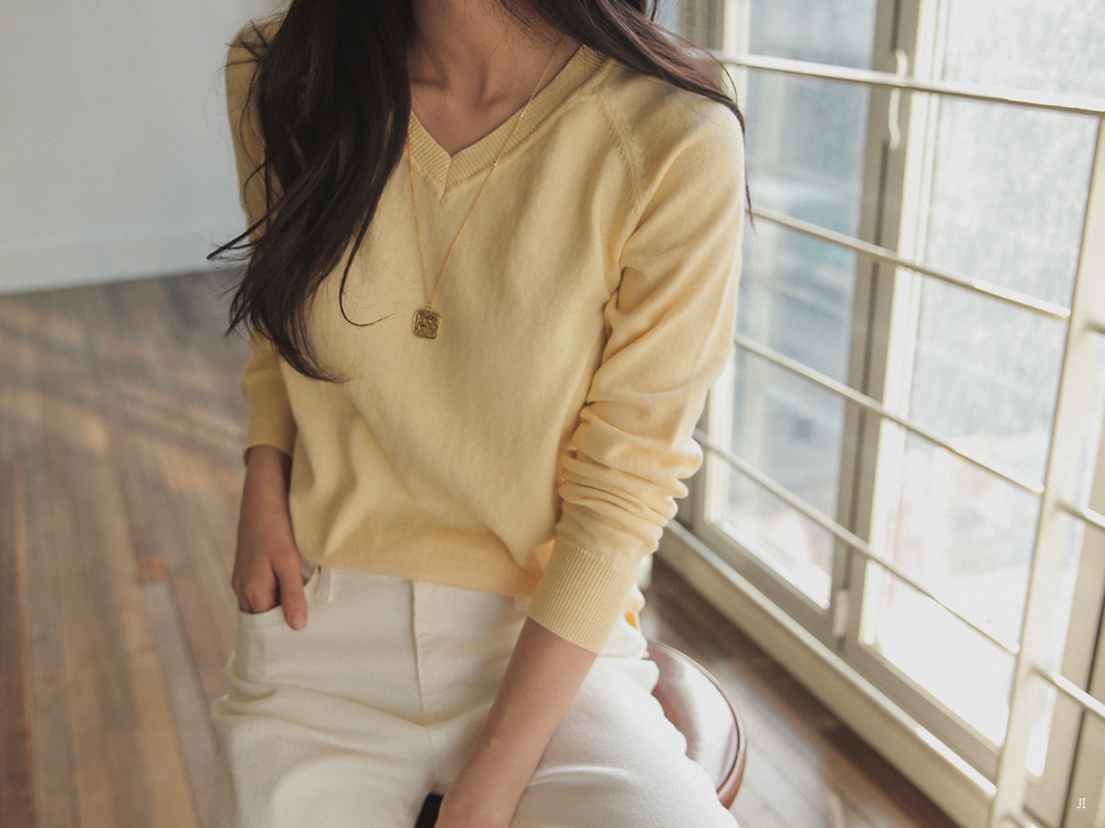 적당한 브이넥 네크라인 사이로 보이는