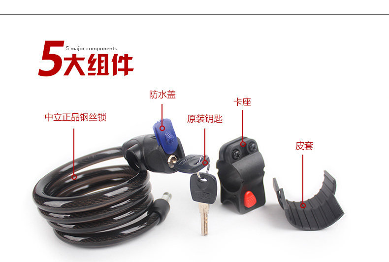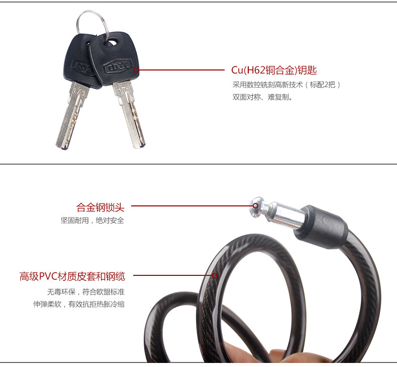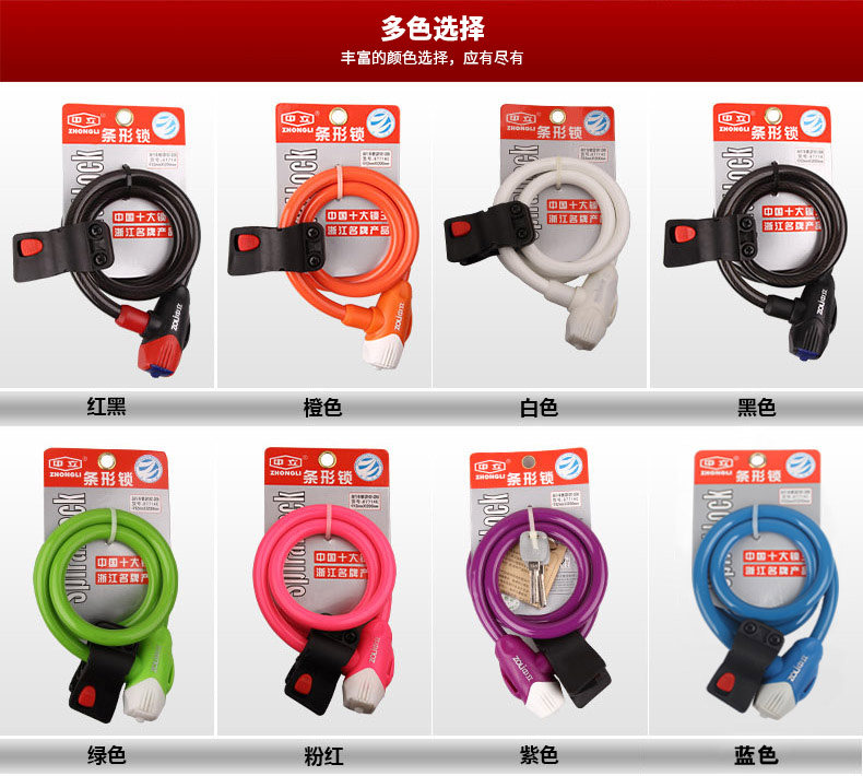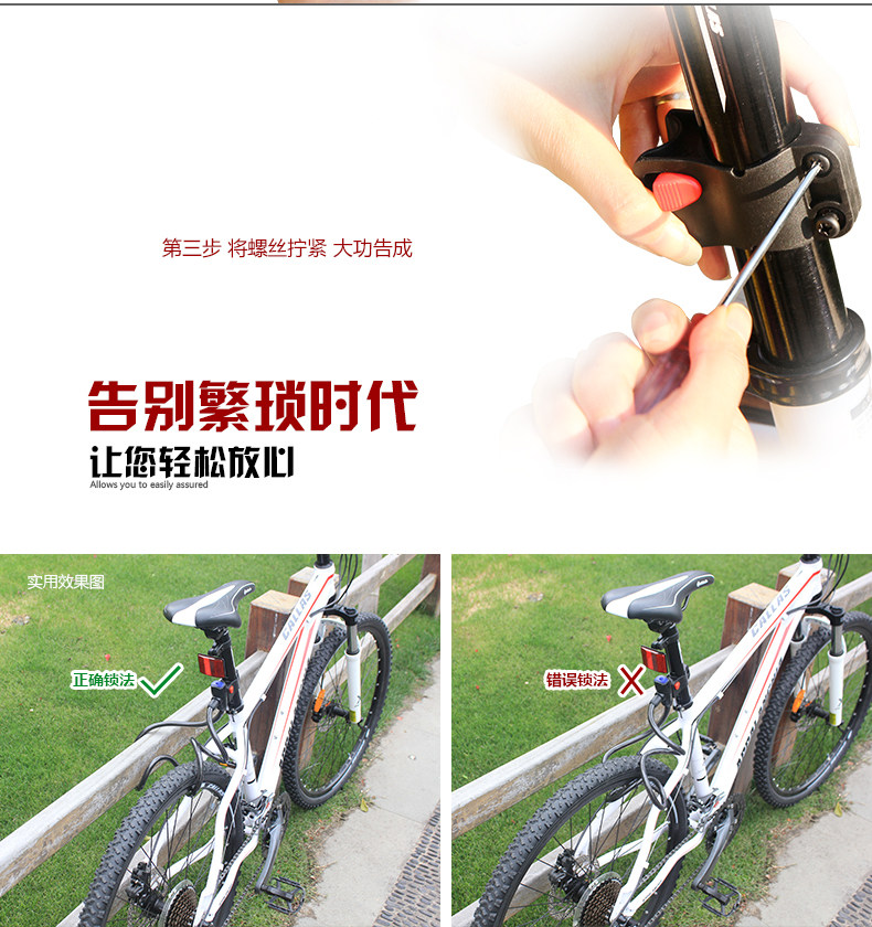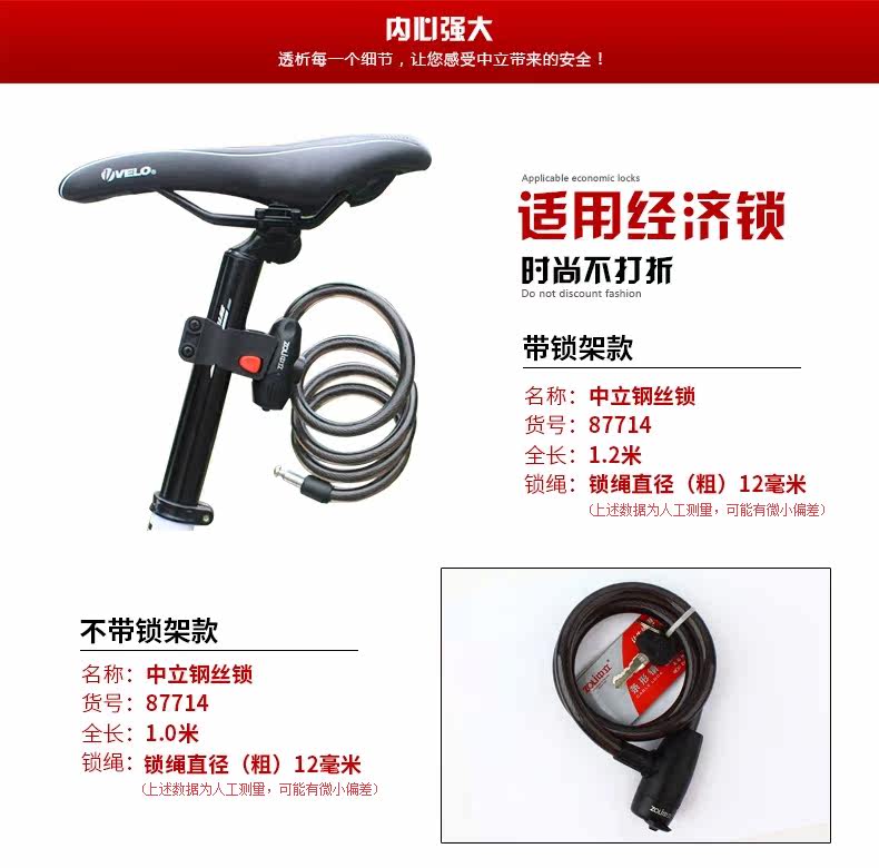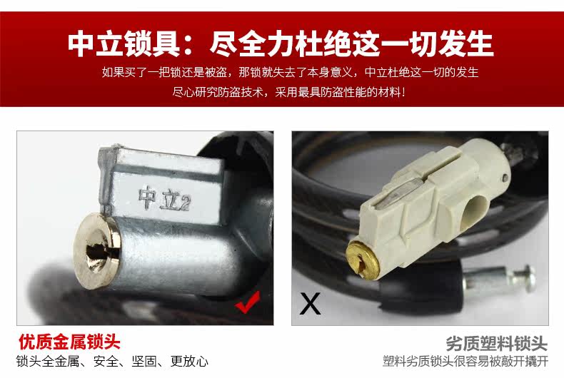 中立 山地自行车锁 防盗锁公路骑行锁具死飞钢丝锁 单车配件装备
