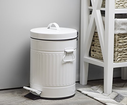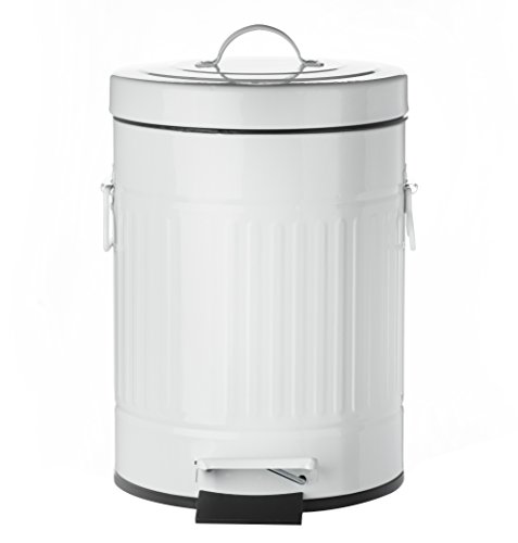 Round Waste Bin in Glossy White, 5L Garbage Trash Can with Step Foot Pedal, by AMG