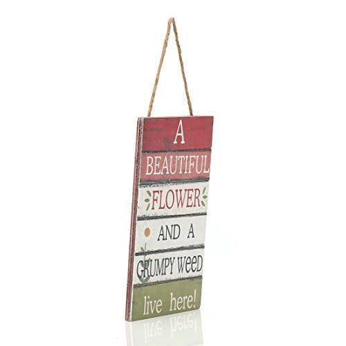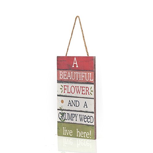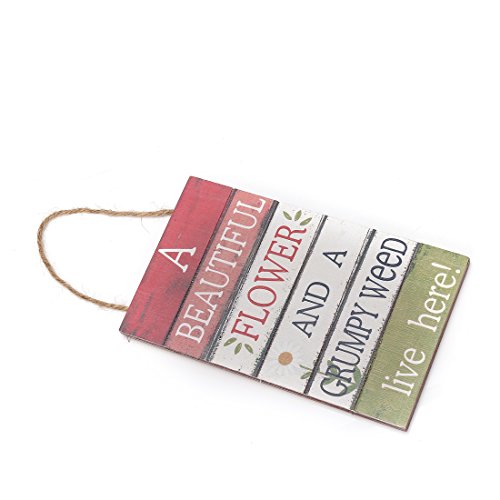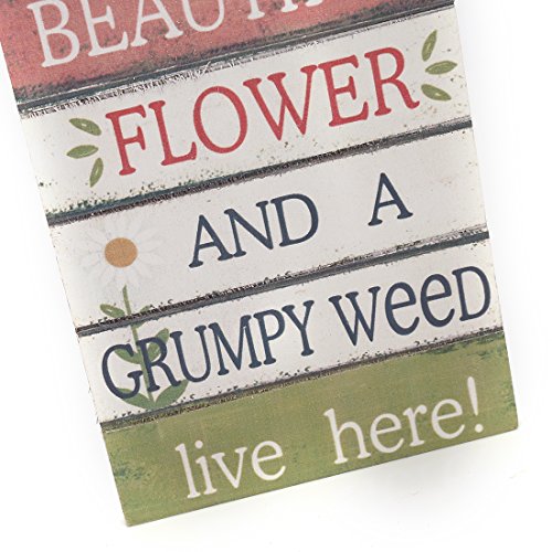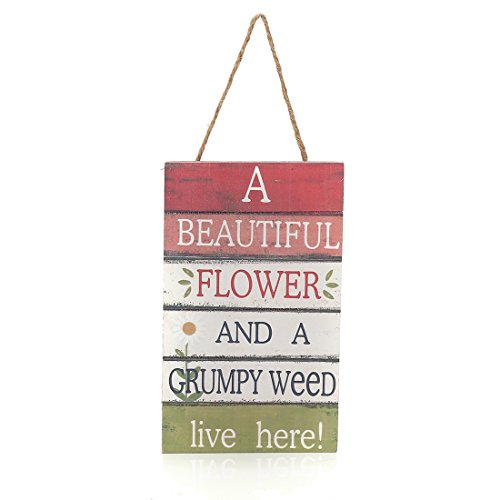 8"x4.8" Wood Fun Decorative Hanging Plaque Sign (A Beautiful Flower And A Grumpy Weed Live Here)