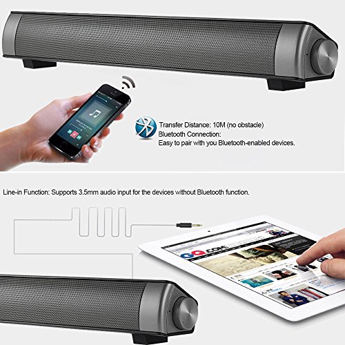 Multifunktionale Bluetooth Soundbar: Unterstutzt 3,5-mm-Audioeingang fur die Gerate ohne Bluetooth-Funktion, 32GB TF Karte Musik zu spielen, die Freisprechfunktion und Sprachaufforderung.