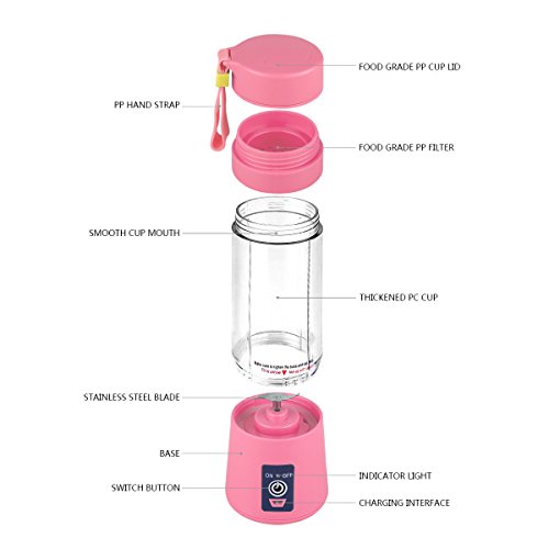 LeaningTech 다기능 미니 믹서 쥬스 전동 USB충전식 야채/과일 수작업 소형 포터블 휴대 편리 핑크