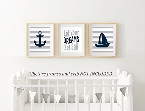 Nautical Nursery Prints for Baby Room Decorations - NO FRAMES OR MATTING