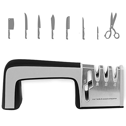 -. Feature : ★四段階の研ぎ:ハサミ研ぎ、粗研ぎ、細研ぎ、仕上げ研磨四つの研ぎ方法がありまして、さまざまな状態のナイフに便利に使えます。簡単軽く力を入れている程度なので、女性の方にも簡単に扱うことができます。 / ★安定性:人間工学に基づいた、安全で快適な持ち手ハンドル、又滑り止め付きのしっかりした台座で、高い安定性を与えます。 / ★耐久性:ステンレス鋼とセラミック材料を使用、丈夫で耐久性が高く、どんな悪くなったナイフでも修復します。 / ★多様性:包丁研ぎ器は最大限に活用し、野菜用包丁、果物用包丁、肉切り包丁など研ぐことができます。 / ★デザイン:サイズはコンパクトなので、どんなキッチンキャビネットでも場所を取らず収納でき、いつでも取り出して、使えることができます。