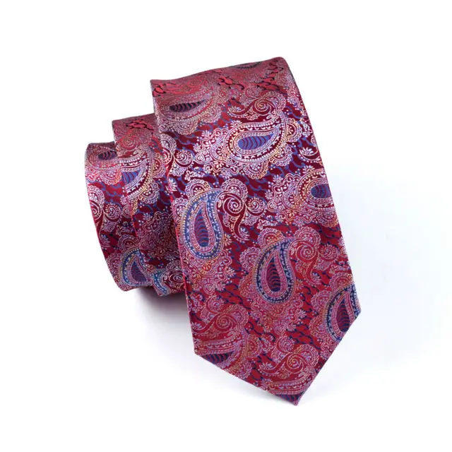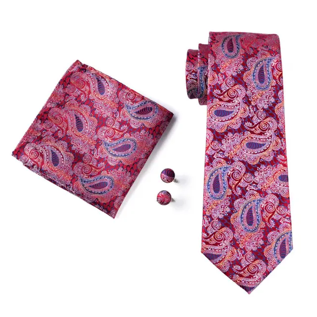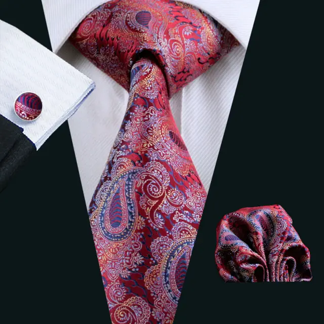 LS-552 2016 핫 새로운 남성 넥타이 100% 실크 레드 페이즐리 자카드 짠 타이 + 손수건 + 커프스 세트 정장 웨딩 비즈니스 파티