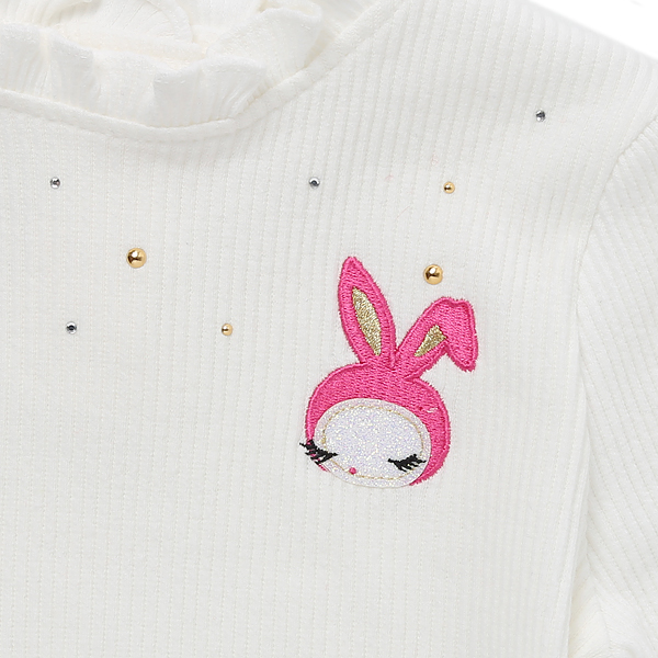 상품설명 IV 캣 티셔츠입니다. 편안한 다이마루 원단으로 만들어졌습니다. 반목 프릴 디자인에, 네크라인을 따라 들어간 핫피스 장식과 고양이 자수가 F/W 레이어드 룩에도 포인트가 될수 있습니다. 편안하게 입을 수 있는 코디하시기 좋은 데일리 아이템입니다.