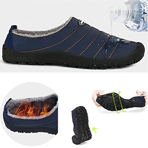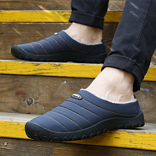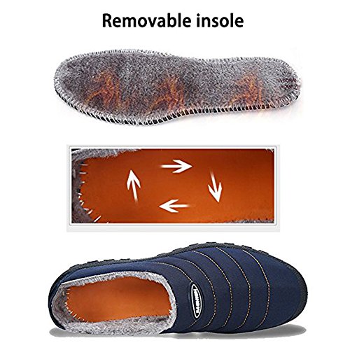 -. Feature : The fully fur lining is comfortable and soft, keeping your feet dry and relaxed after a long day of hard work. The house slippers keep your feet warm and help you withstand the cold winter. You could probably order 1/2 size up if you want to wear heavy socks. Hope this helps. / The cloth upper is thick and comfortable, the insole is also removable. The house slippers are easy to clean, should be washed by hand, and it is unsuitable for machine-washing. You can wash the shoe-pad and place in the well-ventilated and basked place regularly to keep them dry and remove feet odor. / Soft and durable rubber sole provides you an anti-skid protection and have good traction for all-day comfort. It absorbs noise while walking on the floor, and also protects the floor from scratches. / The winter slippers are perfect for indoor and outdoor wearing, also ideal for your families or friends as a gift. You can walk around the house, visit your neighbors, walk a dogs, pick up your child, throw rubbish and fetch your parcel or just stay at home while wearing our slippers. / SHOP CONFIDENCE: We offer a 100% no risk money-back guarantee in 30 days if our slippers with quality problem absolutely. And simply EXCHANGE in size. Take no risk to buy now!