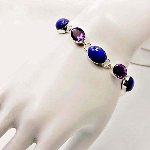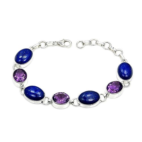 Lapis Lazuli, Amethyst; Solid Sterling Silver; Adjustable Length From 6.25"-7.25"