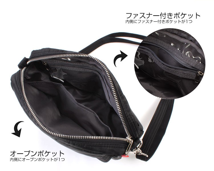 | 仕 様 | 開閉種別:ファスナー開閉式 内部様式:ファスナー付きポケット×1,オープンポケット×1 外部様式:マグネット開閉フラップ付きポケット×1,ボタン式ポケット×1 |