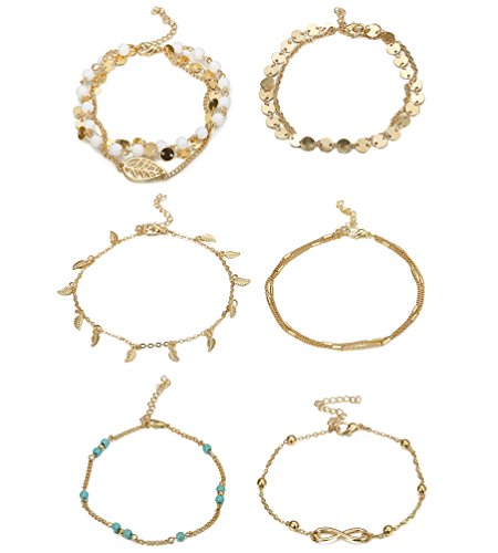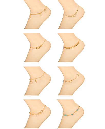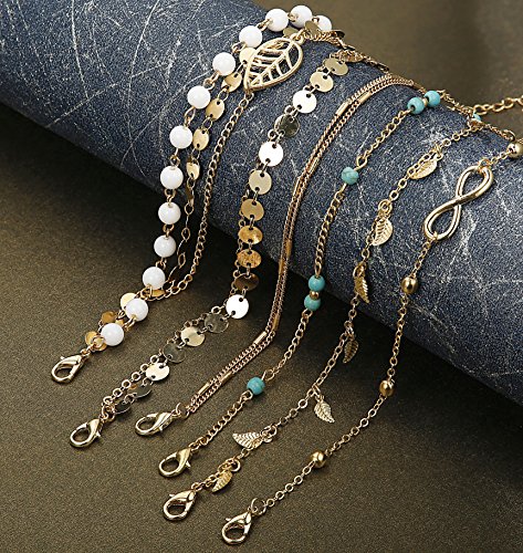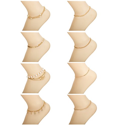 6-8Pcs Beach Anklets For Women :6-8 Pieces Chain Anklets Bracelets Set, Give You More Choices for Your Daliy Wear.