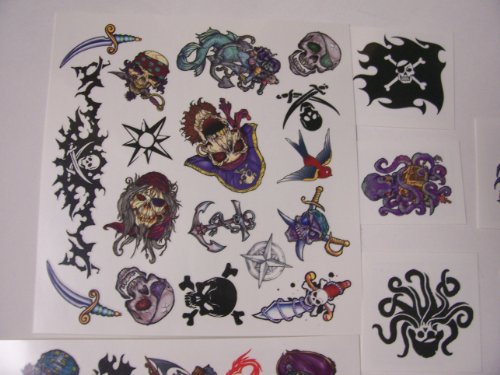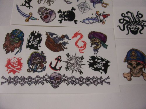 -. Binding : Health and Beauty -. Brand : Savvi -. Feature : Savvi Pirate Temporary Tattoos / Skeleton Coming Out of Blue Cover / Apply with water / Remove with baby oil or rubbing alcohol / Made in the USA -. IsAdultProduct : 0 -. Label : Savvi -. Manufacturer : Savvi -. MPN : Savvi Pirate Skelet Coming Out of Blue -. PackageQuantity : 1 -. PartNumber : Savvi Pirate Skelet Coming Out of Blue -. ProductGroup : Beauty -. ProductTypeName : HEALTH_PERSONAL_CARE -. Publisher : Savvi -. Studio : Savvi -. Title : Savvi Pirate Temporary Tattoos ~ Skeleton Coming Out of Blue (Over 35 Tattoos)