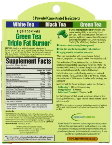 APPLIED NUTRITION GREEN TEA TRIPLE FAT BURNER, 30 LIQUID SOFT-GELS