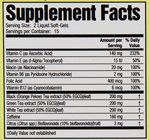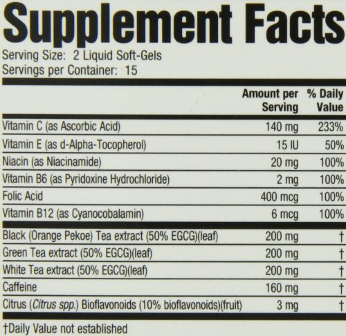 • Three powerful tea extracts are provided in a superior delivery system. Liquid Soft-Gels release their nutrients faster for optimum results.