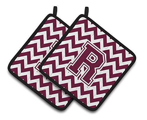 Caroline's Treasures Letter R Chevron Maroon & White Pair of Pot Holders CJ1051-RPTHD, 7.5HX7.5W, Multicolor