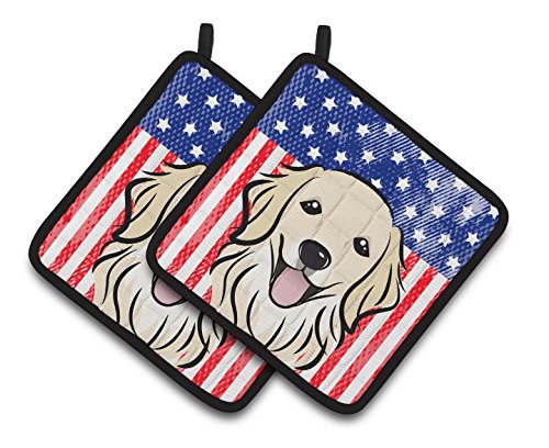 Caroline's Treasures American Flag & Golden Retriever Pair of Pot Holders BB2135PTHD, 7.5HX7.5W, Multicolor