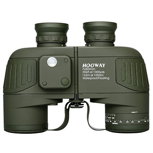 PERFECT FOR MARINE - Marine binoculars with 7x magnification and 50mm objective lens;22 mm eye relief,6.8mm exit pupil,and field of view is 396 feet at 1000 yards / 132 meters at 1000 meters.