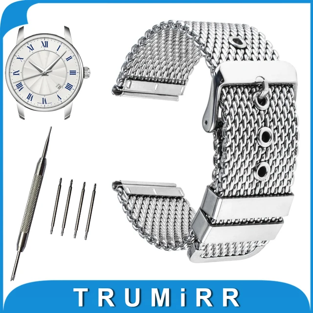 | [해외] 20 미리메터 22 미리메터 milanese 손목 mido 시계 밴드 스테인레스 스틸 스트랩 교체 손목 벨트 팔찌 + 도구 + 핀 블랙 실버 |