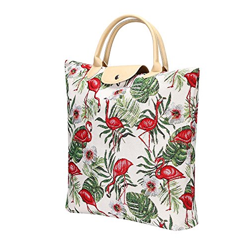 Flamingo Shopper Bag by Signare | Shoulder Tapestry Tote | 31x30x13.5 cm | (FDAW-FLAM)